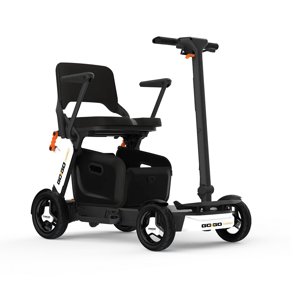 Discover the Innovative Compact Folding Mobility Scooter, exclusively from Pride Mobility. Engineered for convenience, independence, and effortless travel, this lightweight scooter features a contactless start, easy-fold mechanism, and space-saving compact design. Reaching speeds of up to 6,4 km/h and supporting users up to 136 kg, it’s perfect for everyday journeys and travel adventures alike. Whether you’re navigating busy streets, shopping, or exploring, enjoy smooth performance, portability, and comfort in one sleek package.